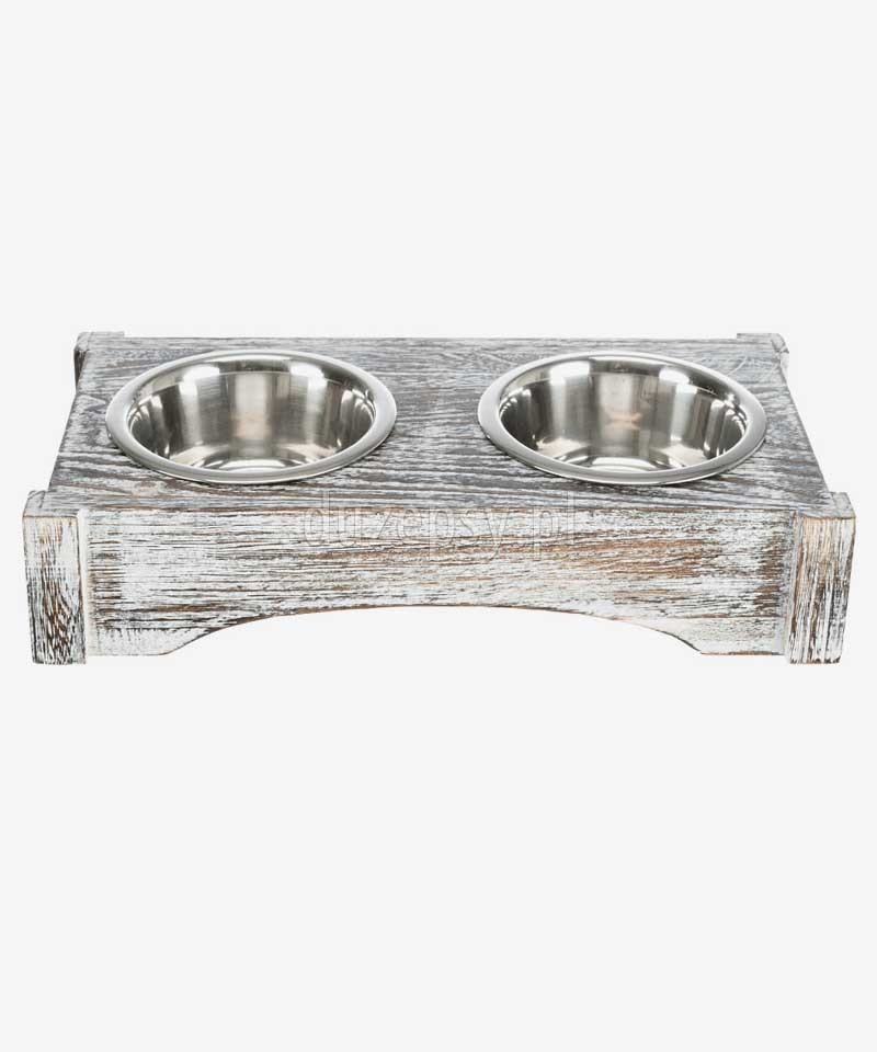 Miski dla psa na drewnianym stojaku