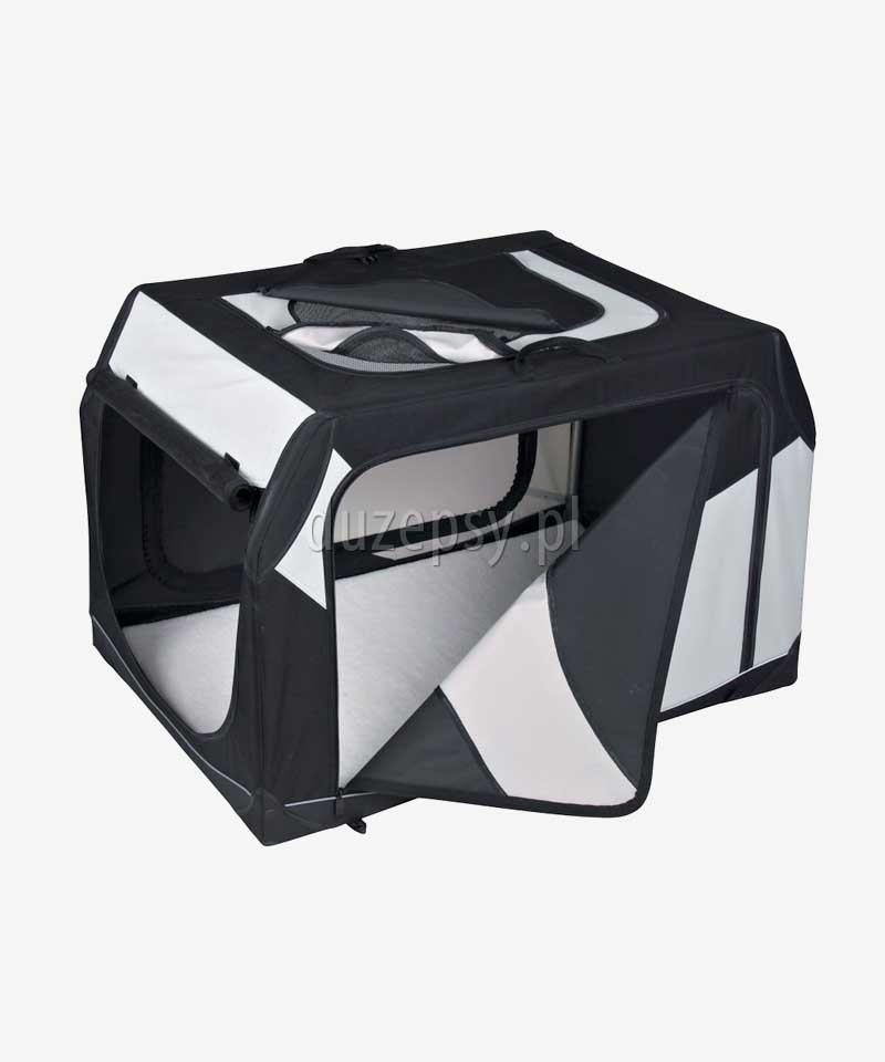 Buda transporter dla psa składany VARIO z wysokiej jakości poliestru, otwierany z trzech stron. Dostępny w kilku rozmiarach, także dla psów dużych ras. Stabilność transportera zapewnia metalowa rama. Wstawki z siatki zapewniają właściwą cyrkulację powietrza. Górna siatka może być zasłonięta dla większego komfortu twojego psa. Rzepy pod spodem stabilizują transporter. Odpinana mata ochronna zapobiega zadrapaniom zderzaka podczas wsiadania i wysiadania przez psa. Z boku znajduje się kieszeń i miejsce na butelkę z wodą. Spód wewnątrz wyłożony materiałem przypominającym skórę jagnięcą. Może być również używany w warunkach zewnętrznych.